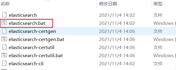 |—— plugins:插件目录进入 ElasticSearch 的 bin 目录下,会看到很多文件,启动的文件是 elasticsearch.bat