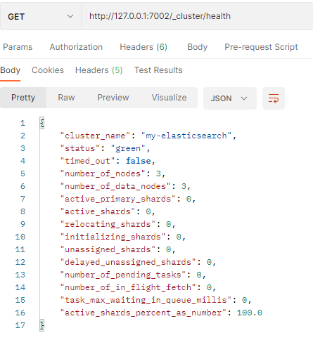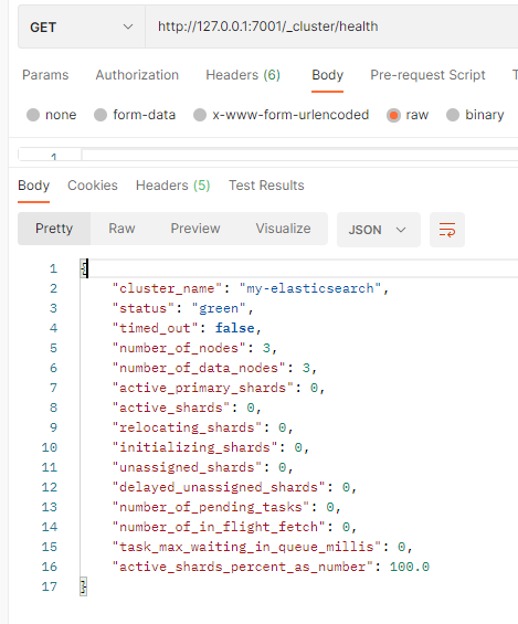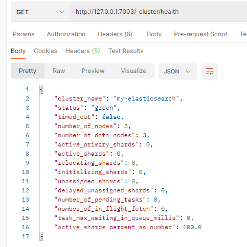 在 Postman 发送 GET 请求:http://127.0.0.1:7001/_cluster/health
