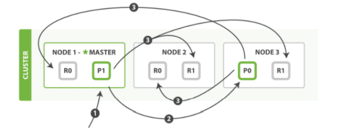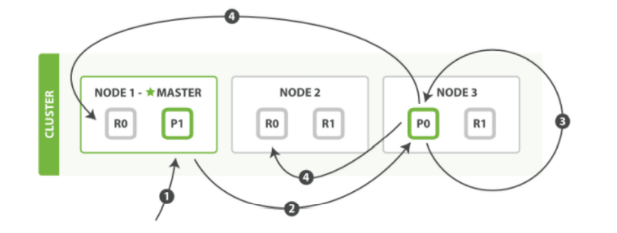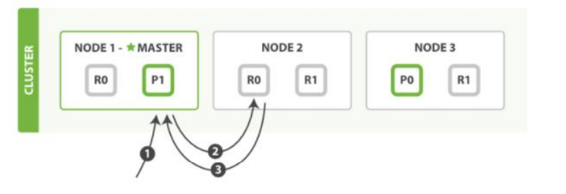 _id来确定文档属于分片P0。分片P0的副本分片存在于所有的三个节点上。在这种情况下,它将请求转发到 Node 2 - Node 2 将文档返回给 Node 1,然后将文档返回给客户端