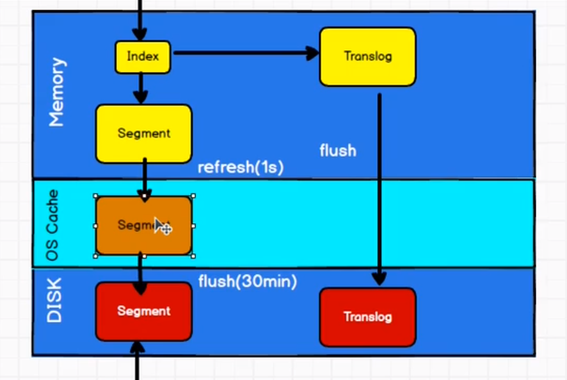 原始的操作直接从内存(Memory)的 index 到磁盘(Disk)进行写入数据 Segment
