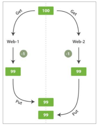 从图中可以看出 Web_1 对 stock_count(数量)所做的更改已经丢失,因为 Web_2 不知道 Web_1 的 stock_count(数量)的操作已经过期,Web_2 的操作覆盖了 Web_1 的操作。结果会认为有库存只是减少一个商品,但是卖给顾客的商品却有两个,这后果非常严重。