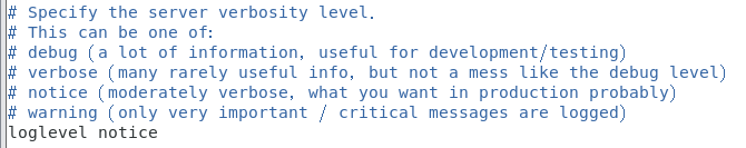 loglevel notice # 日志级别。可选项有: