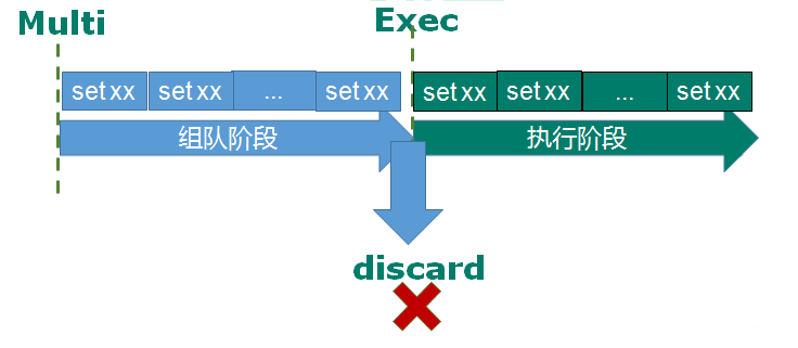 discard- 从输入 Multi 命令开始,输入的命令都会依次进入命令队列中,但不会执行,直到输入完成