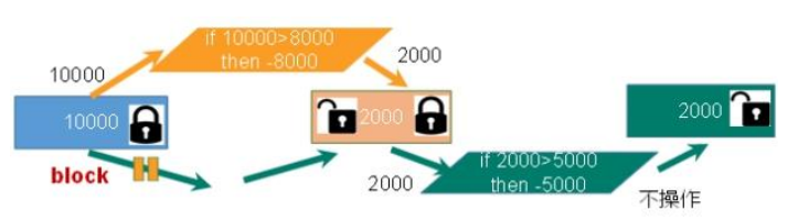 - 一个请求想给金额减 8000