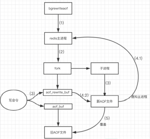 aof_buf缓冲区(旧文件继续存储数据)和aof_rewrite_buf重写缓冲区(新文件的数据),保证原 AOF 文件完整以及新 AOF 文件生成期间的新的数据修改动作不会丢失子进程写完新的 AOF 文件后,向主进程发信号,父进程更新统计信息